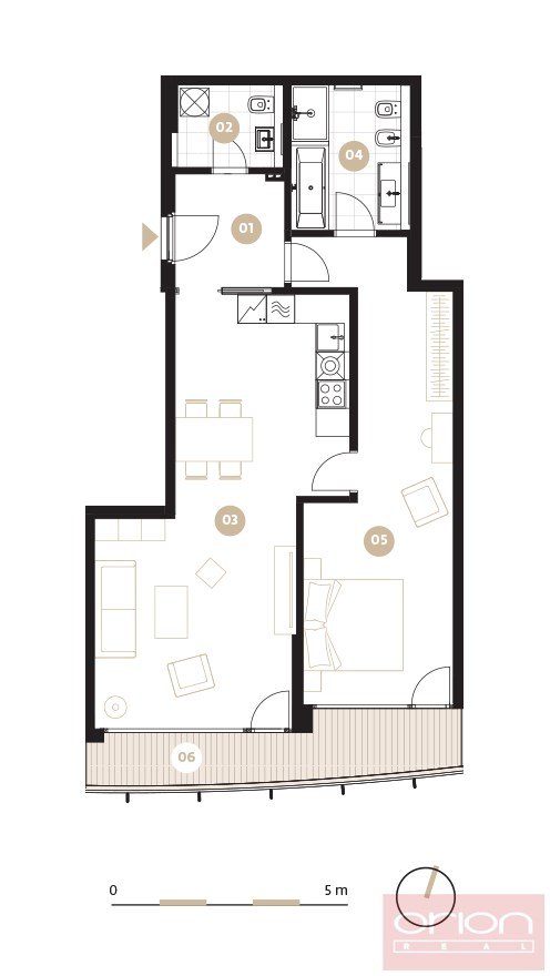 Nabízíme k pronájmu luxusní, klimatizovaný byt 2+kk s terasou ve 2. patře novostavby Rezidence Ellipsis s 24/7 recepcí, výtahem, podzemní garáží, wellness - bazén, sauna, a rozlehlou zahradou s parkovou úpravou v lokalitě Praha 5 - Smíchov s výborným spojením do centra, do nákupního centra Nový Smíchov, do Německé a Francouzské školy. Zařízený byt o velikosti 73,64 m2 nabízí vstupní halu, prostorný obývací pokoj otevřený s jídelnou a plně vybavenou kuchyní a se vstupem na terasu o velikosti 14,28 m2, ložnici, koupelnu s vanou, sprchovým koutem, bidetem a toaletou. Kvalitní materiály, dřevěné podlahy, velkoformátová dlažba, francouzská okna, bezpečnostní dveře, internet, A/C, sklep. Možnost nájmu garážové stání za poplatek 200 EUR +21%DPH/měsíc. Oblíbená lokalita Praha 5 - Smíchov s dobrým dopravním spojením, v pěší vzdálenosti na stanici metra a tramvaje Anděl, do parku Petřínské sady. Nájem 2.200 EUR + 12% DPH splatný v EUR + členský poplatek za využití wellness 100 EUR/měsíc. Nájem zahrnuje spotřebu energií, internet a 2x měsíčně úklid. V přízemí budovy se rovněž nachází fitness centrum Prisma Institut. Byt je určen ke střednědobému pronájmu, minimální doba ubytování je jeden měsíc.