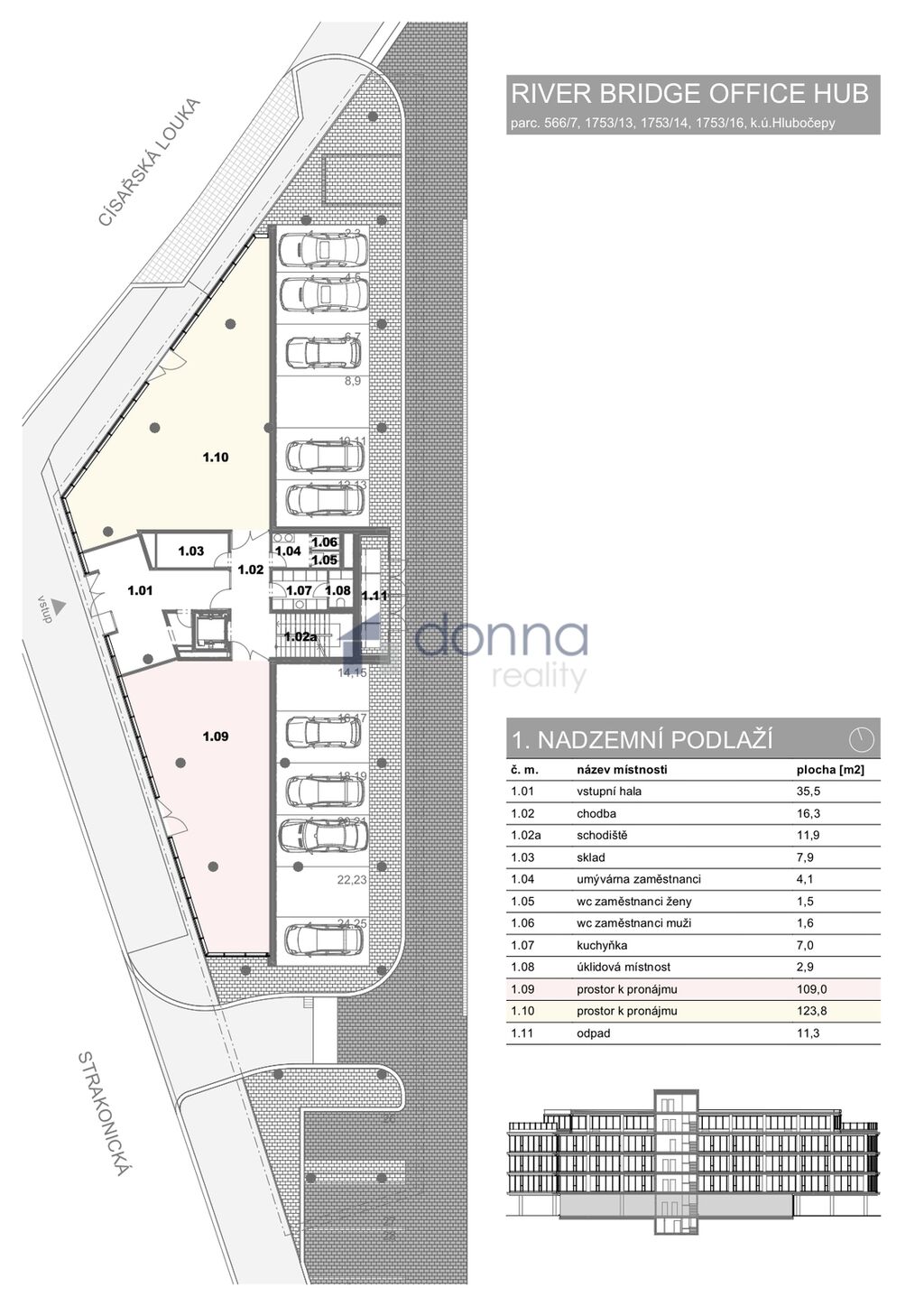 Nabízíme k pronájmu komerční prostory o výměře 124 m2, v moderním administrativním komplexu River Bridge Office Hub, Praha 5 – Hlubočepy v ulici Strakonická. Prostory se nacházejí ve 1.NP a jsou nabízeny ve fázi výstavby, což umožňuje jejich přizpůsobení na míru konkrétním potřebám nájemce.