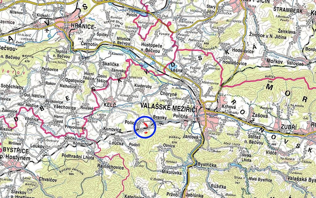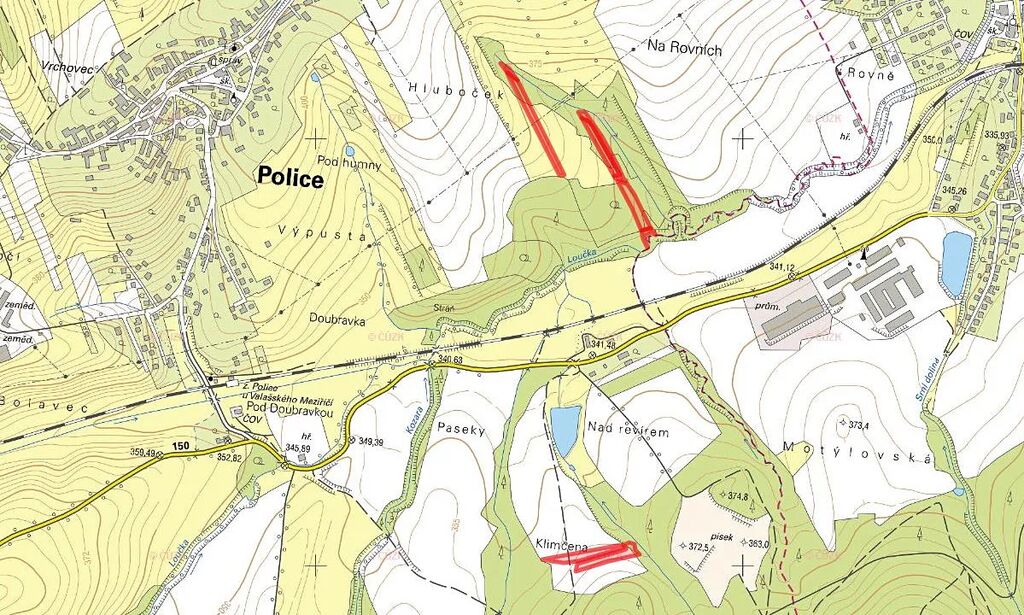 K prodeji je 100% vlastnictví na pozemcích parc. č. 5913, 5910, 5565, 5564, 5423, 5408, 5407 a 5399 zapsaných na LV 502 v KÚ Police u Valašského Meziříčí.