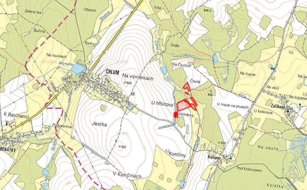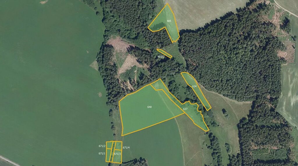 Předmětem prodeje jsou parc. č. 403/2, 405, 634, 637, 640, 641/19, 671/1, 671/2, 671/3 a 671/4 zapsané na LV 405 v KÚ Chlum u Hlinska.