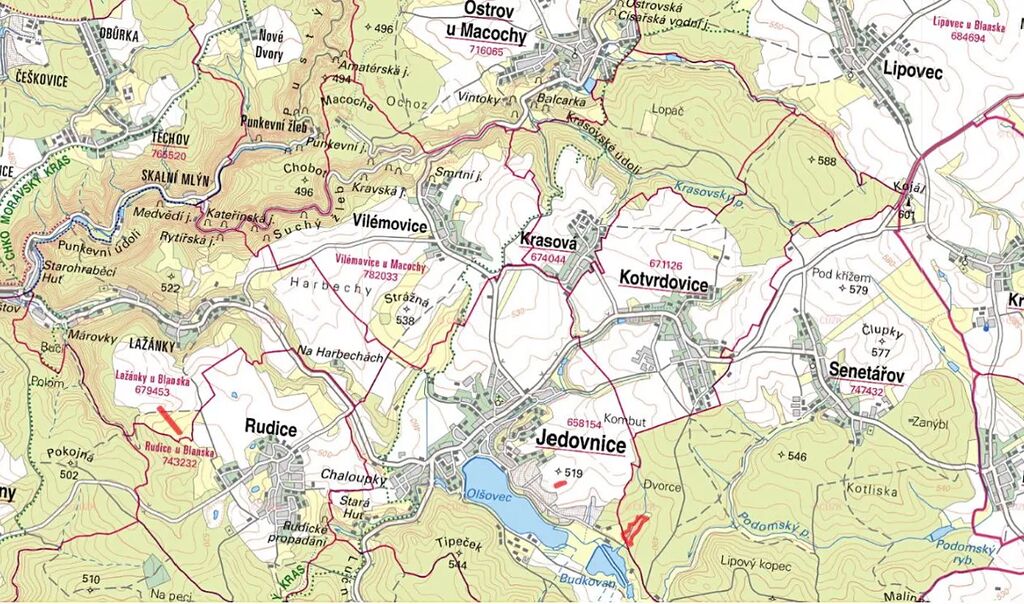 K prodeji je parc. č. 2535/95 zapsaná na LV 1003 v KÚ Jedovnice, parc. č. 875/145 zapsaná na LV 293 v KÚ Lažánky u Blanska. Dále pak parc. č. 659/2 zapsaném na LV 91 v KÚ Senetářov.