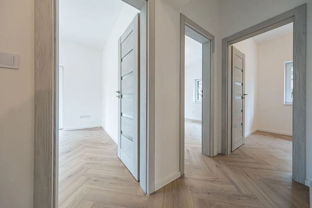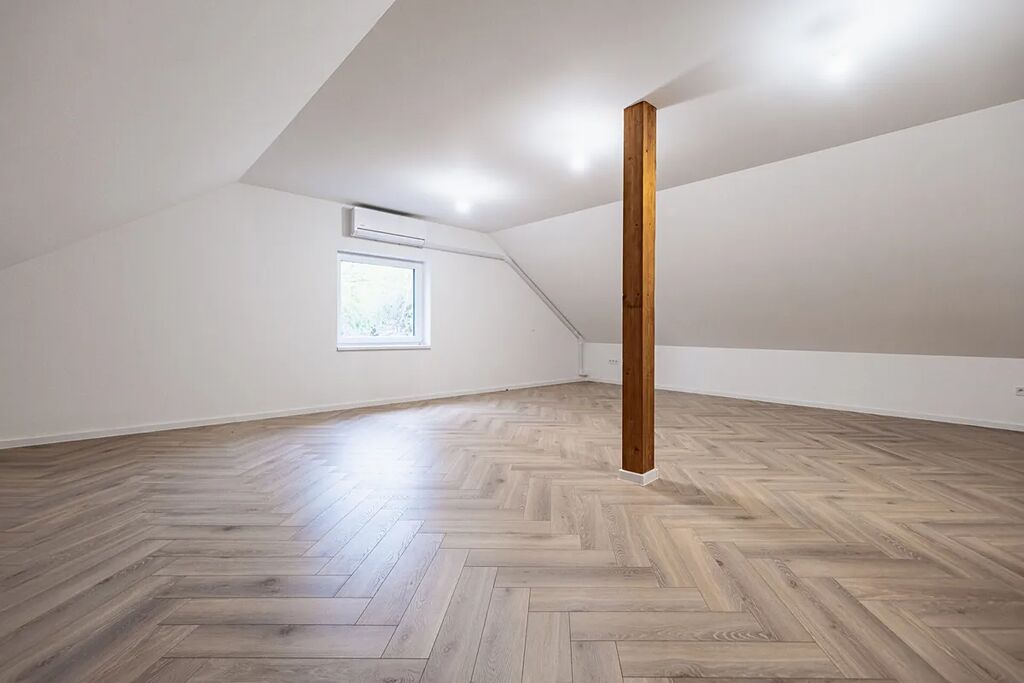 V přízemí najdete dvě ložnice, pracovnu (či pokoj pro hosty), koupelnu s walk-in sprchou a samostatnou toaletu. Z každého pokoje je vstup na terasu obklopující dům. V patře vás čekají další dvě prostorné místnosti se šikminami – ideální pro dětské pokoje, hernu, ateliér nebo šatnu snů.