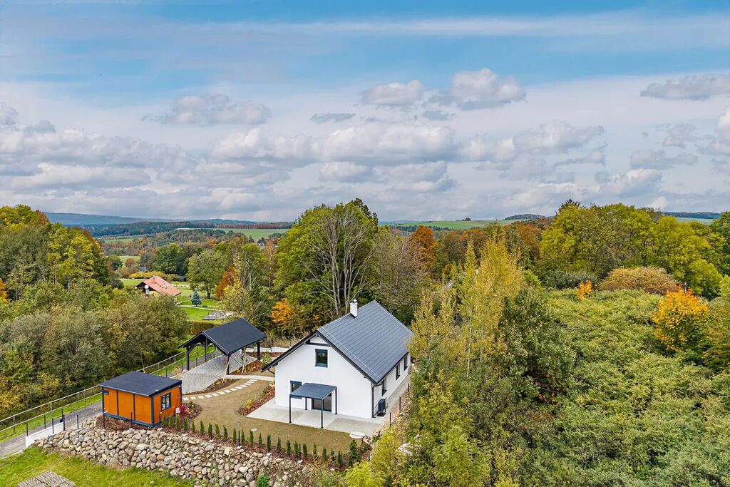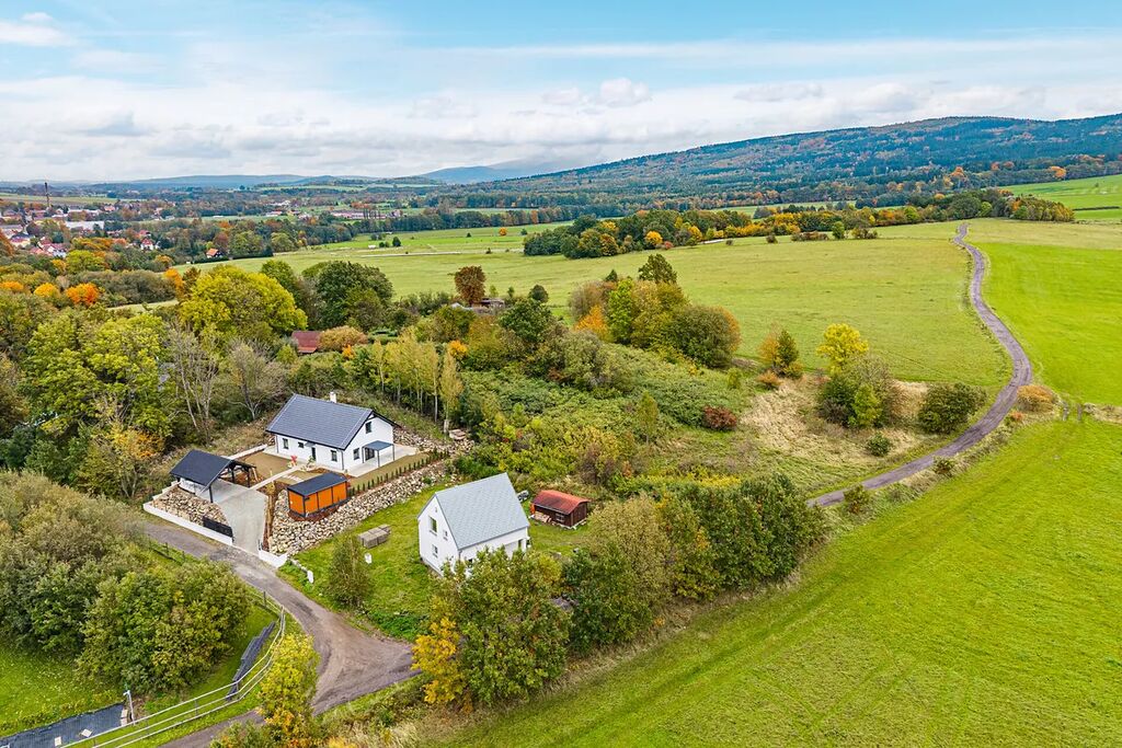 Vítejte v Heřmanicích u Frýdlantu – na místě, kde se každý den probouzíte do ticha, vůně trávy a výhledu na zeleň. Právě tady stojí novostavba z roku 2025 (kolaudace říjen 2025), která spojuje moderní design, praktičnost a kouzlo domova, kam se budete každý den rádi vracet.