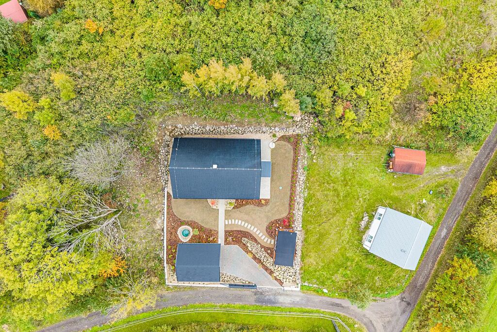 Zahrada je kompletně upravená – nový trávník, nově vysazené stromky, živý plot, květiny, zpevněné chodníky, zatravňovací plochy i elektrická brána na dálkové ovládání. Dům je napojen na vlastní vrtanou studnu, má moderní ČOV, a díky kvalitním materiálům a energetické třídě B je provozně velmi úsporný.