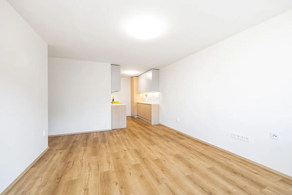 Byt vypadá přesně jak vidíte na fotografiích, nejedná se o vizualizaci. Kuchyně je vyrobena na míru a kompletně vybavená spotřebiči (elektrická trouba, mikrovlnná trouba, indukční deska, myčka) a spolu s obývacím pokojem vytváří ideální společenský prostor. Prostorná koupelna je s vanou, sprchovou zástěnou a umyvadlovou skříňkou se dvěma zásuvkami. V bytě je také prostorná komora nebo šatna.