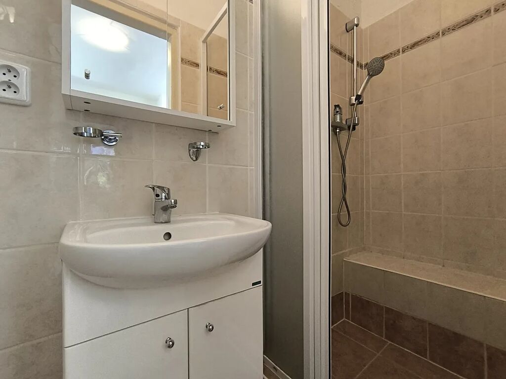 Dispozice: předsíň 3,9 m² , koupelna se sprchovým koutem 1,8 m², WC s umyvadlem 1,7 m², obývací pokoj 22,1 m², pokoj 8,0 m²