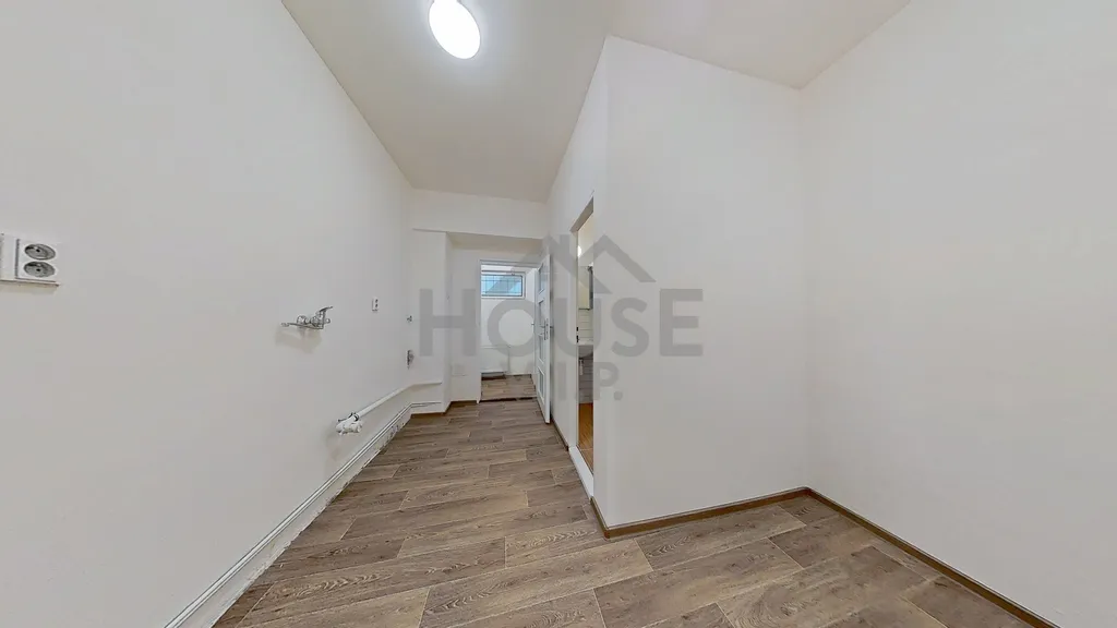 Do tohoto pokoje je vstup z kuchyňky s přípravou pro kuchyňskou linku a se vstupem do koupelny se sprchovým koutem.