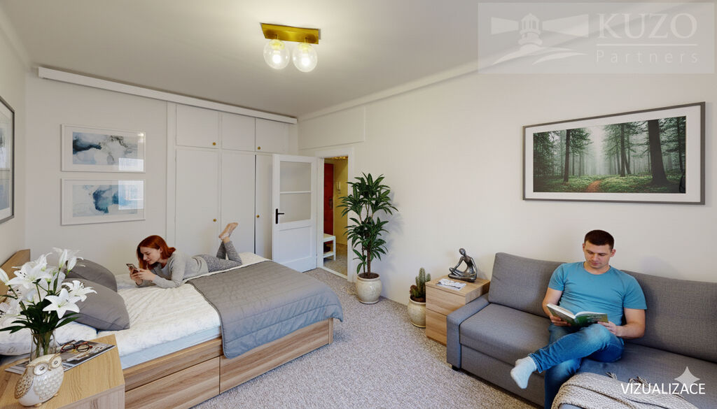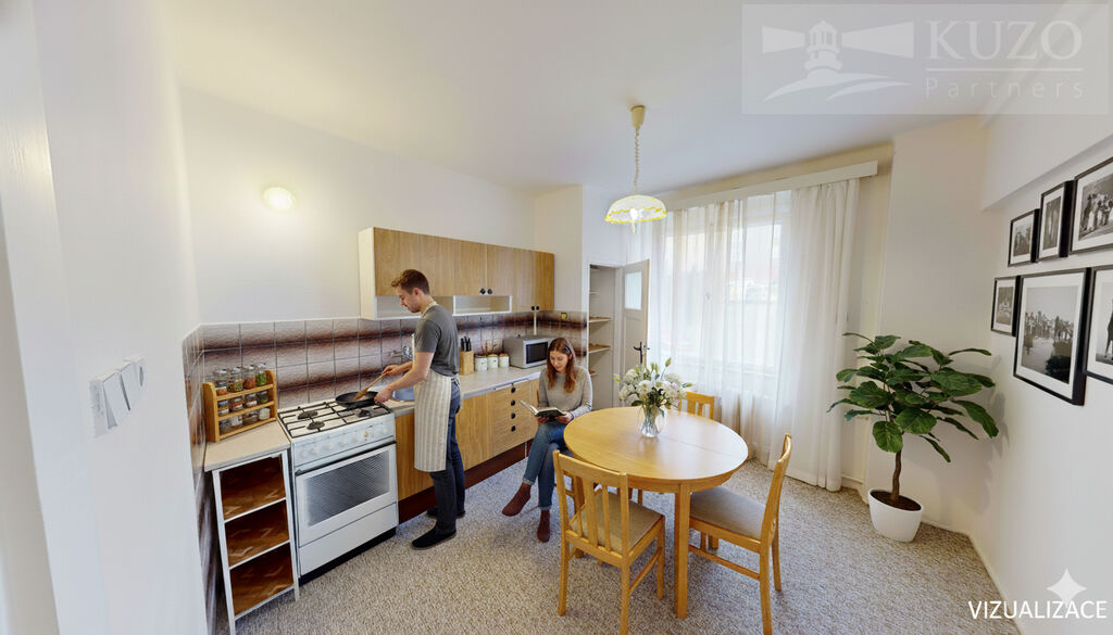 Prostorné a praktické uspořádání: Byt o dispozici 1+1 sestává z velkého obývacího pokoje a samostatné, prostorné kuchyně, která pohodlně pojme i jídelní kout.
