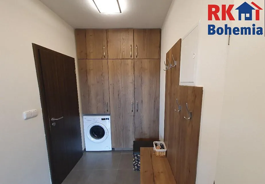 Samozřejmostí je vestavěná skříň v obývací části i praktická úložná skříň s pračkou na chodbě.