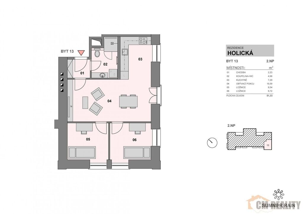Nabízíme k pronájmu moderně zrekonstruovaný byt 3+kk o velikosti 51 m, situovaný ve 2.NP Rezidence Violka.