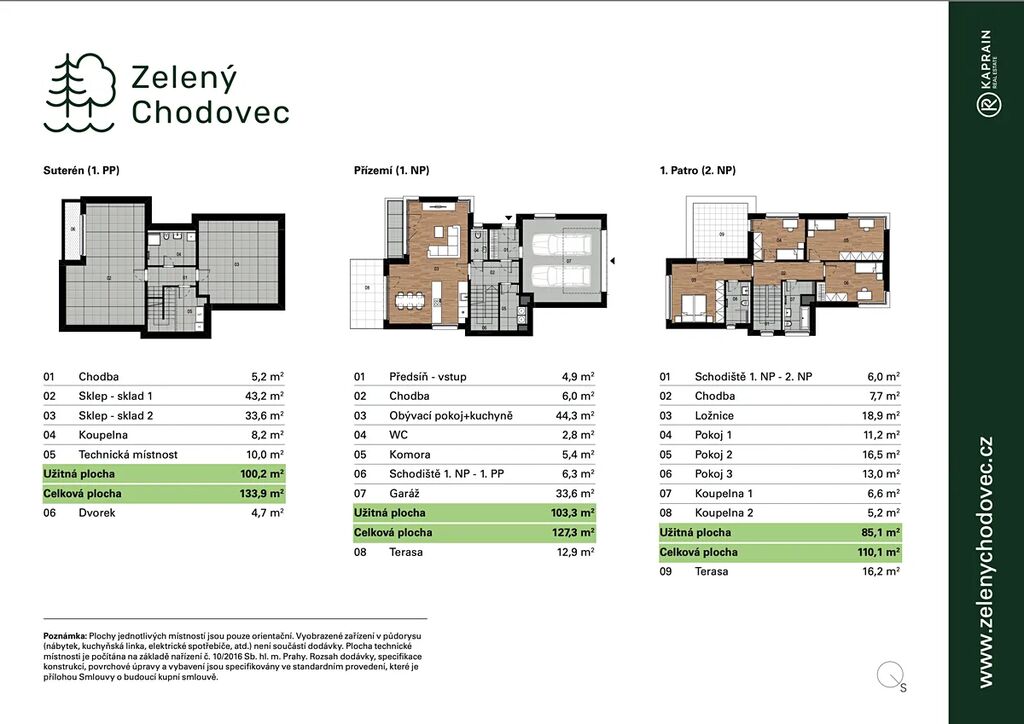 V projektu Zelený Chodovec jsou umístěny nízkoenergetické rodinné domy se zahradou a garáží. Domy jsou navrženy v energeticky velmi výhodné třídě B, což zaručuje výrazně nižší provozní náklady. Úspory za energie přinesou i okna s izolačním trojsklem. Jako hlavní topný zdroj bude použito invertorové tepelné čerpadlo s vestavěným elektrokotlem. V celém domě budou položeny kvalitní dřevěné podlahy. Obklady do koupelen bude možné vybírat ze tří různých barevných variant. Veškeré koupelnové vybavení bude zařízeno prémiovými značkami jako jsou Hansgrohe, Villeroy-Boch a další. Součástí standardního vybavení budou i předokenní žaluzie.