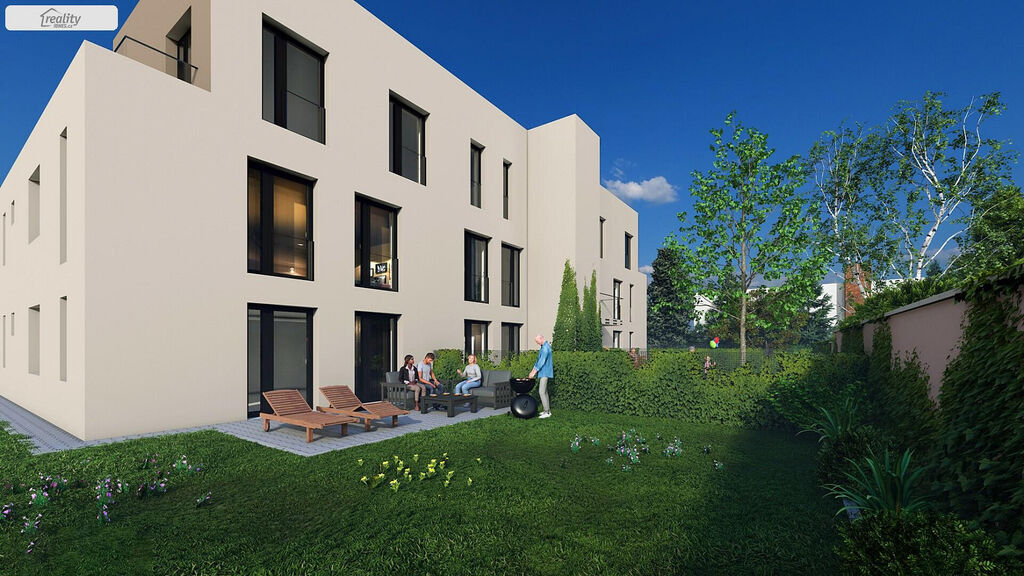 V zastoupení developera nabízíme nadstandardní byt v samostatné vile, v které se nachází pouze osm bytových jednotek. Tento byt je o dispozici 4+kk a užitné ploše 110 m² a jeho součástí je zahrada 277 m² s vlastním vjezdem a parkovacím stáním, další parkovací stání v pozemním podlaží lze dokoupit. Byt disponuje dvěma koupelnami, jednou samostatnou a druhou jako součást ložnice společně s WC. Další WC se nachází na chodbě bytu. Budoucí majitelé jistě ocení samostatnou technickou místnost a rovněž prostornou šatnu, která je propojena samostatným vchodem z ložnice.