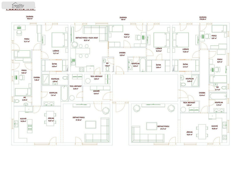 Výhodou projektu je možnost dokončení bytu materiály a sanitou dle výběru budoucího majitele. Kuchyň není součástí vybavení.