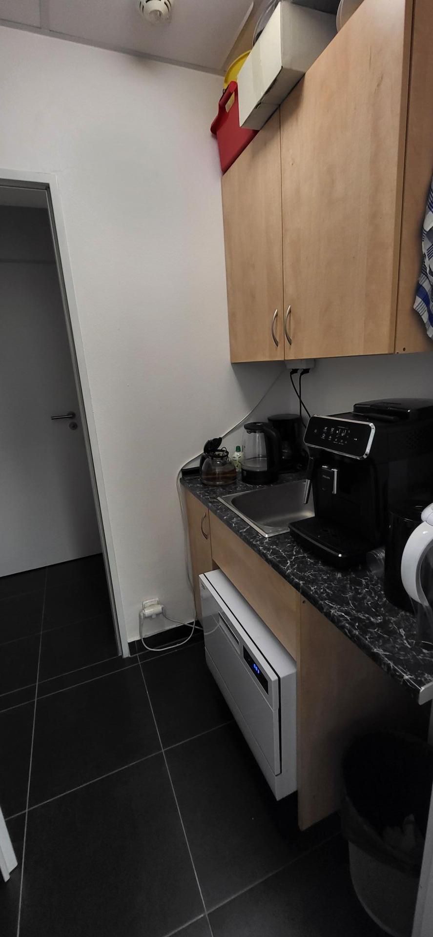 Dispozičně se jedná o otevřený prostor, asi v polovině oddělený malým schodištěm (3 schody), takže ve dvou výškových úrovních, což lze využít například k rozdělení na prodejní a kancelářskou část. Příslušenství tvoří malá čajová kuchyňka a sociální zázemí.