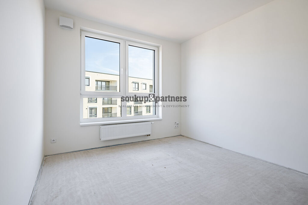 Byt je orientován na východ do vnitrobloku na konci zástavby s pěkným výhledem do okolí.