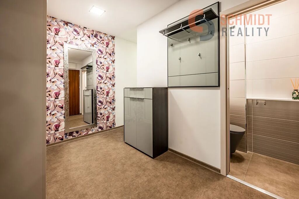 Byt je vybaven prostornou vestavěnou skříní a klimatizací. K bytu dále náleží sklepní kóje a ve společných prostorách domu je k dispozici kolárna.