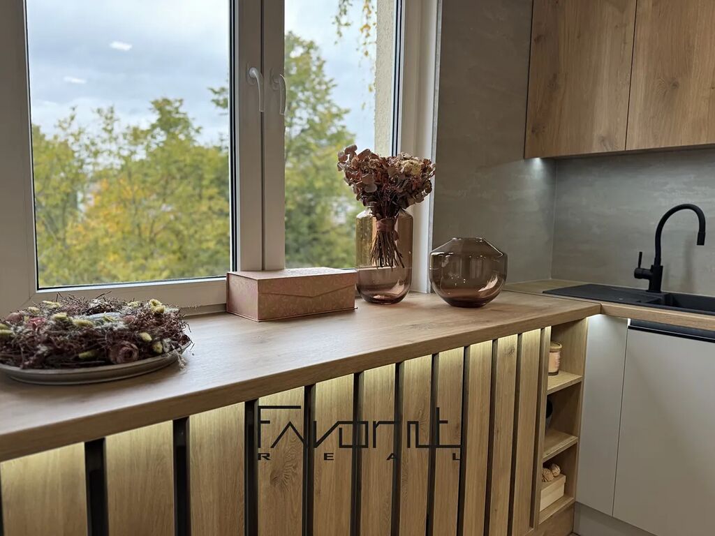 Byt prošel kompletní, exkluzivní rekonstrukcí s důrazem na kvalitu, detail a moderní design. Dispozice je atypická a velmi vzdušná, orientace do tří světových stran zajišťuje příjemné denní světlo po celý den.