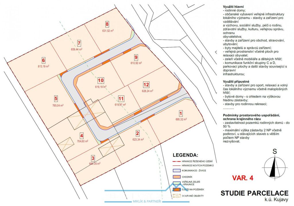 c.) 2 parcely pro bytové domy + 4 parcely pro rodinné domy