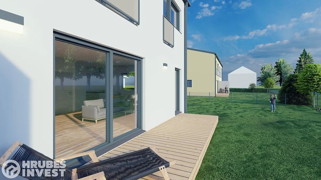 2NP – 3 pokoje, koupelna s vanou, toaleta. O vytápění se bude starat elektrické podlahové vytápění (el. kabely zalité v betonu), voda je městská, odpady jsou svedeny do obecní kanalizace a je přiveden optický kabel na internet. Dům bude mít velmi nízké náklady na bydlení. Je provedena příprava na krbová kamna, dále příprava pro fotovoltaiku (po dohodě je možno zajistit montáž i se zajištěním dotace). V ceně nemovitosti je dlážděné parkovací stání a terasa, a oplocení pozemku. V zadní části domu, mezi terasami bude vybudována stěna, kvůli soukromí.