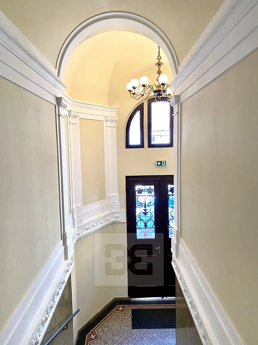 Jednotka nabízí předsíň, pokoj s kuchyní (včetně spotřebičů – lednicí s mrazákem, pečící a mikrovlnnou troubou, ), vedle které je v pravé části koupelna s wc a sprchovým koutem, obývací částí, nad kterou je tvrzené sklo, díky kterému je prostor osvětlen denním světlem. Z této částí a z předsíně je přístupná prostorná ložnice s klenutými stropy, které jsou efektně osvícené barevnými led světly. Pohodí zvyšuje rekuperace, díky které je v prostoru stále čerstvý vzduch. Vytápění a TUV zajišťuje plynový kotel. Prostor, vzhledem ke kolaudaci, je možno používat i jako kancelář, atp., příp. jako kombinaci rezidence/komerce. Dle požadavků majitele musí mít nájemce trvalý pobyt v ČR a rejstřík exekucí/insolvence bez záznamu. Dlouhodobý pronájem vítán.