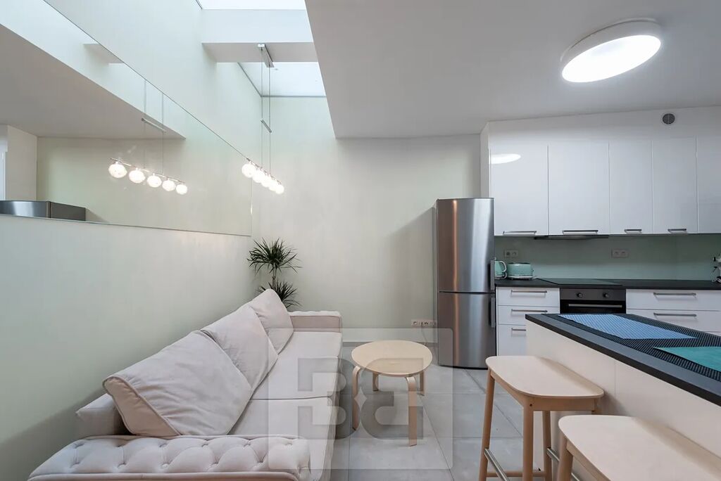 Jednotka nabízí předsíň, pokoj s kuchyní (včetně spotřebičů – lednicí s mrazákem, pečící a mikrovlnnou troubou, ), vedle které je v pravé části koupelna s wc a sprchovým koutem, obývací částí, nad kterou je tvrzené sklo, díky kterému je prostor osvětlen denním světlem. Z této částí a z předsíně je přístupná prostorná ložnice s klenutými stropy, které jsou efektně osvícené barevnými led světly. Pohodí zvyšuje rekuperace, díky které je v prostoru stále čerstvý vzduch. Vytápění a TUV zajišťuje plynový kotel. Prostor, vzhledem ke kolaudaci, je možno používat i jako kancelář, atp., příp. jako kombinaci rezidence/komerce. Dle požadavků majitele musí mít nájemce trvalý pobyt v ČR a rejstřík exekucí/insolvence bez záznamu. Dlouhodobý pronájem vítán.