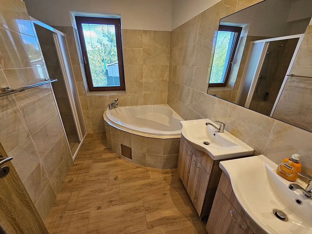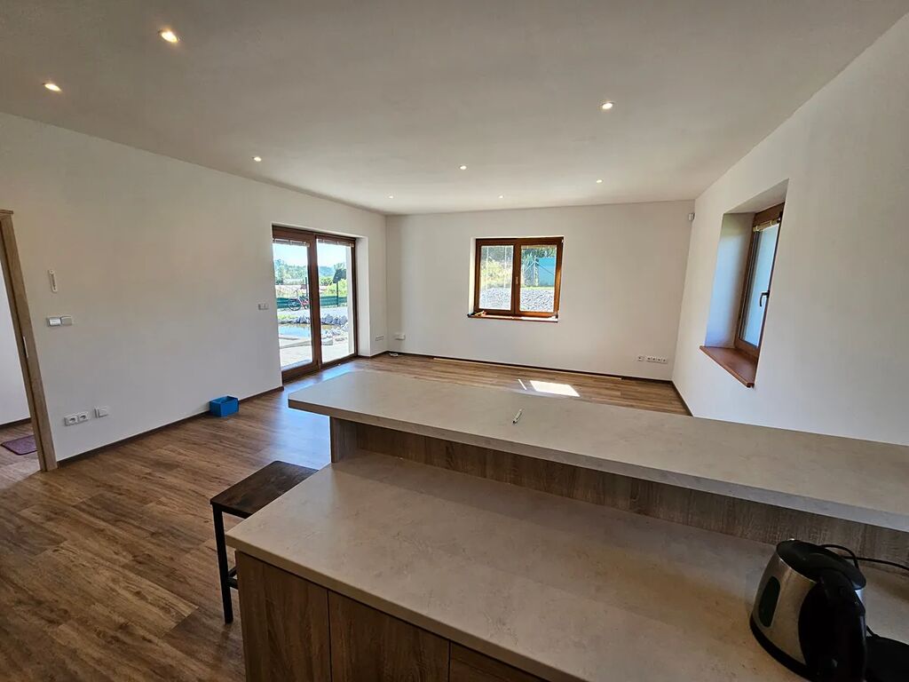 Sháníte krásné moderní a reprezentativní bydlení? K tomu navíc pohodlí města a ještě navíc klid a přírodu venkova? Tak v tomto případě mám pro vás nabídku zcela nového domu, domu ve kterém ještě nikdo nebydlel a to v Havlíčkově Brodě, ul. Reynkova. Jedná se o zděnou přízemní stavbu s obytnou plochou 145 m2, na kterou navazuje velká terasa o výměře 30 m2. Dispozičně se jedná o 4+kk, tedy po vchodu do vstupní chodby zde nalezneme 2 pokoje, ložnici s vlastní koupelničkou WC, dále obývací pokoj s kuchyní , koupelnu vybavenou rohovou vanou, též sprchovým koutem, samostatné WC, šatna a na závěr technickou velkou místnost ( s možností i dalšího využití), jejíž zpřístupnění je z domu, ale také přímo se zahrady o rozloze 950 m2. Pozemek je oplocen, má vjezd opatřený bránou na dálkové ovládání a zadní branku pro útěky do přírody. Na něm dále stojí zahradní domek a v přední části je umístěné zarybněné jezírko s lekníny. Nemovitost je napojena na elektřinu, voda je vlastní z vrtané studny, odpady jsou svedeny do jímky. Plyn zde není zaveden a není ho třeba, neboť vytápění (podlaha voda) a ohřev vody (bojler 300l) zajišťuje kvalitní tepelné čerpadlo. Dům je volný, připravený k nastěhování a čeká na dobrého nájemce, třeba i s domácím mazlíčkem. Nájemné za nemovitost a měsíc činí 30.000, Kč + služby (cca 5 tis.), vratná kauce 50 tis. a odměna RK 20.000, Kč. Pronájem je snadno uplatnitelný jako náklad do účetnictví. Volejte pro informace, či sjednání termínu prohlídky.