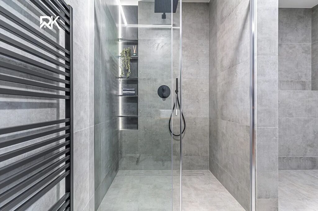 Dvě koupelny s WC, prostorný obývací pokoj s výstupem na terasu, tři ložnice a moderní kuchyňská linka AEG. Vše nové, včetně rozvodů elektřiny, vody i kanalizace.