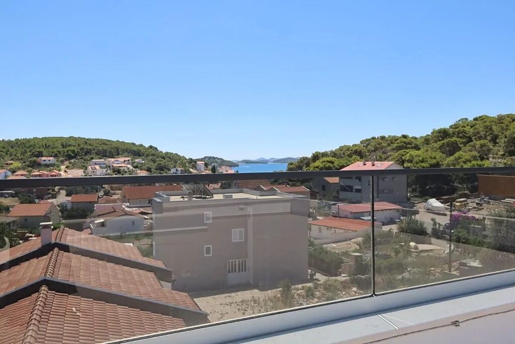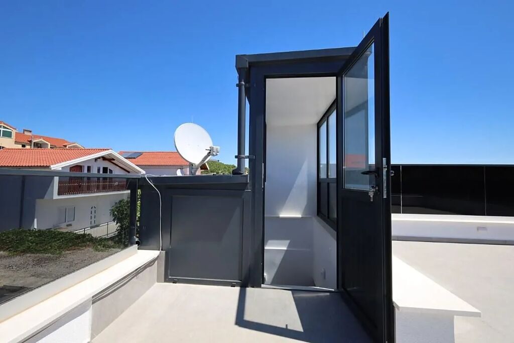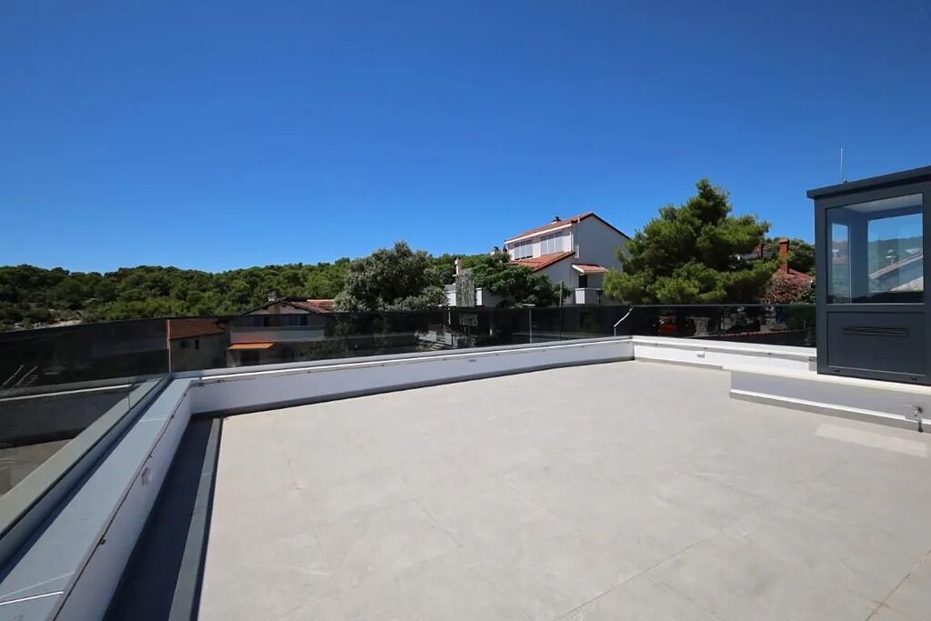 Dovolujeme si Vám nabídnout na prodej dům se střešní terasou a výhledem na moře v obci Tisno na ostrově Murter, jenž je spojen s pevninou mostem, v Šibenické oblasti v Chorvatsku. Jedná se o nově postavený rodinný dvojdomek. Polovina domu o rozloze 96,14 m2 má zahrádku o rozloze 30 m2 a sestává z přízemí, 1. patra a 2. patra, kde je střešní terasa.