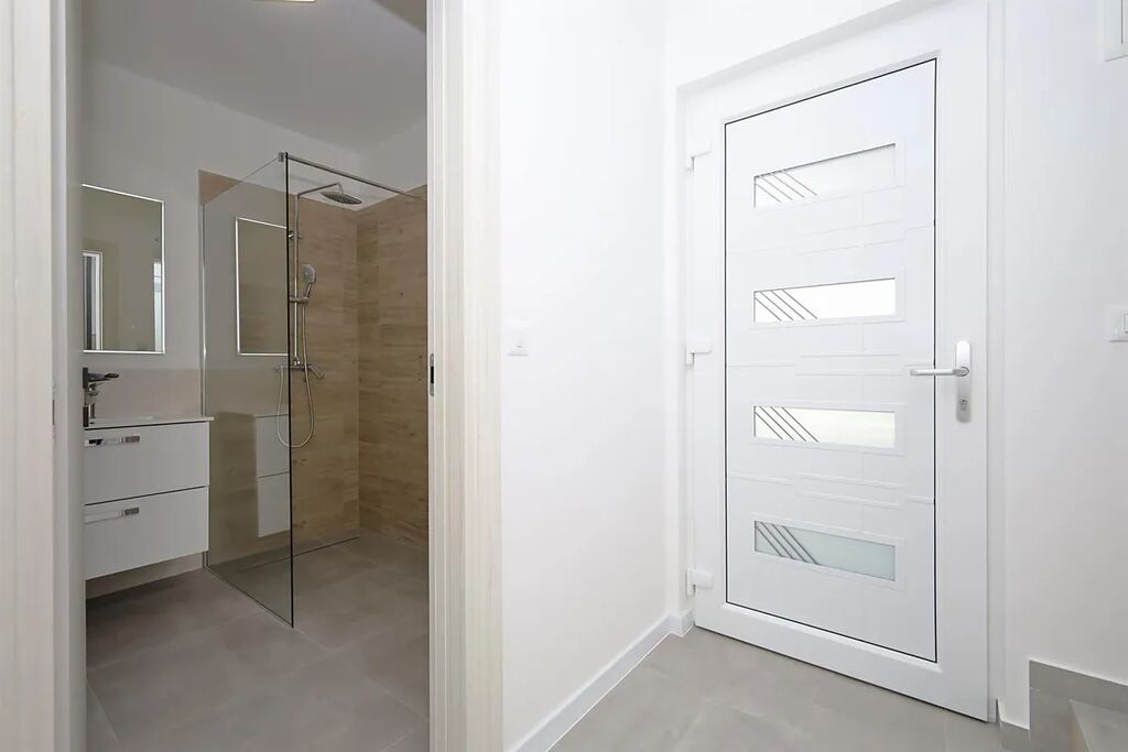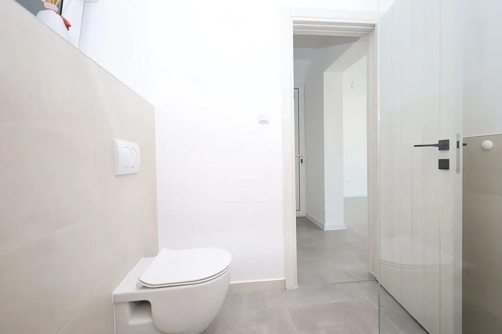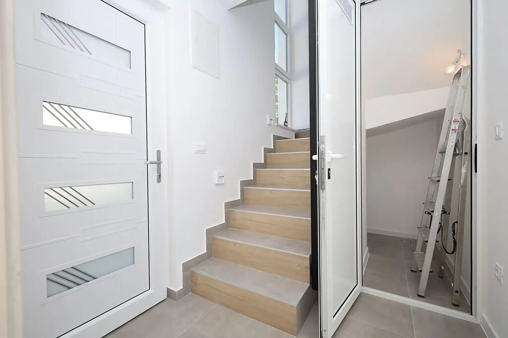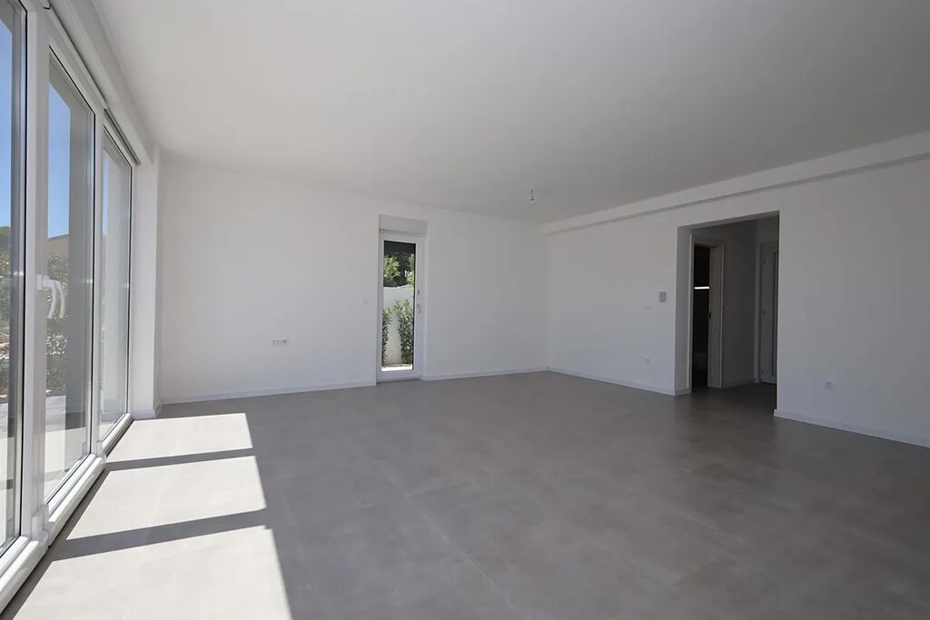 Dům je dokončený a připravený k nastěhování. Je vybavený klimatizací v každém pokoji, podlahovým vytápěním v koupelnách, elektrickými žaluziemi a bezpečnostními dveřmi. Okolí domu zdobí středomořské rostliny a je zde dlážděné parkoviště. Dům je připojený na vodovodní řád, má septik a jihozápadní orientaci. Vzdálenost do centra je asi 1 km, k moři cca 300 m a k oblázkové pláži asi 480 m.