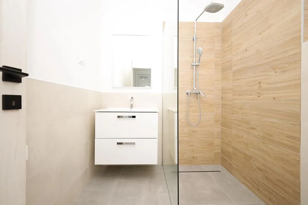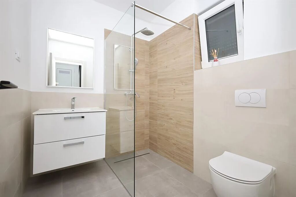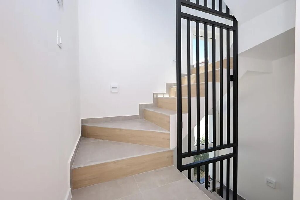 V přízemí domu je chodba, komora, 1 koupelna, velký obývací pokoj s kuchyní a jídelnou a vstup na terasu o ploše 15 m2 s přilehlým dvorkem. V 1. patře je chodba, 1 koupelna a 3 ložnice.Ve 2. patře domu naleznete střešní terasu o rozloze 24,50 m2 s výhledem na moře.