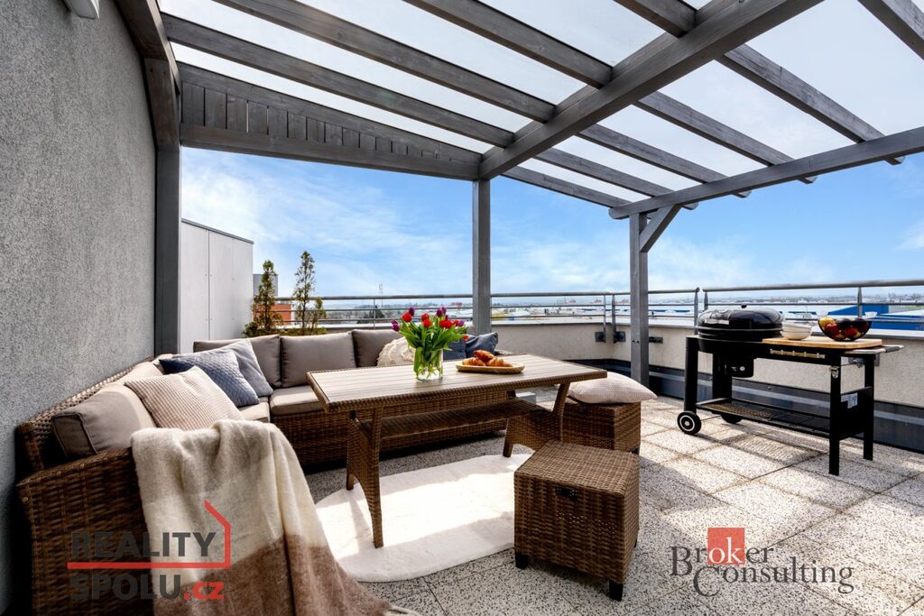 Nabízíme k pronájmu kompletně vybavený, krásný a světlý byt 4+kk o celkové výměře 122 m² (z toho byt 93 m² + terasa 29 m²), který se nachází ve 6. nadzemním podlaží (poslední patro s výtahem) moderního bytového domu v klidné a žádané lokalitě Praha Zličín.