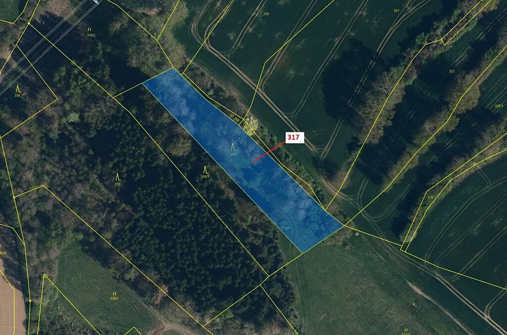 Lesní pozemek o výměře 2967 m2, parcelní číslo 317, podíl 1/1, katastrální území Olešná u Pelhřimova, obec Olešná, obec s rozšířenou působností Pelhřimov, okres Pelhřimov, Kraj Vysočina. Po těžbě.