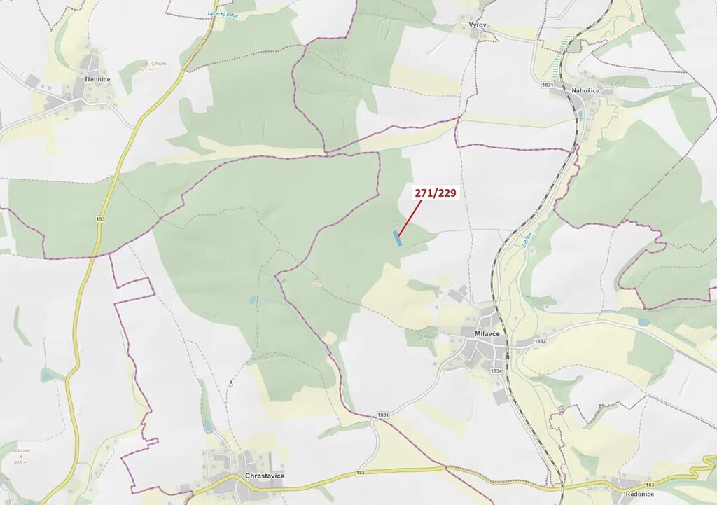 Dražba lesa, Milavče, 3695 m2 (ID: 1885879)