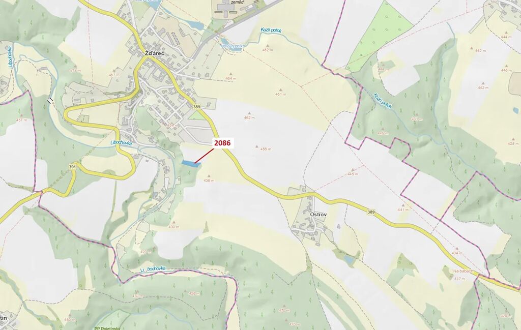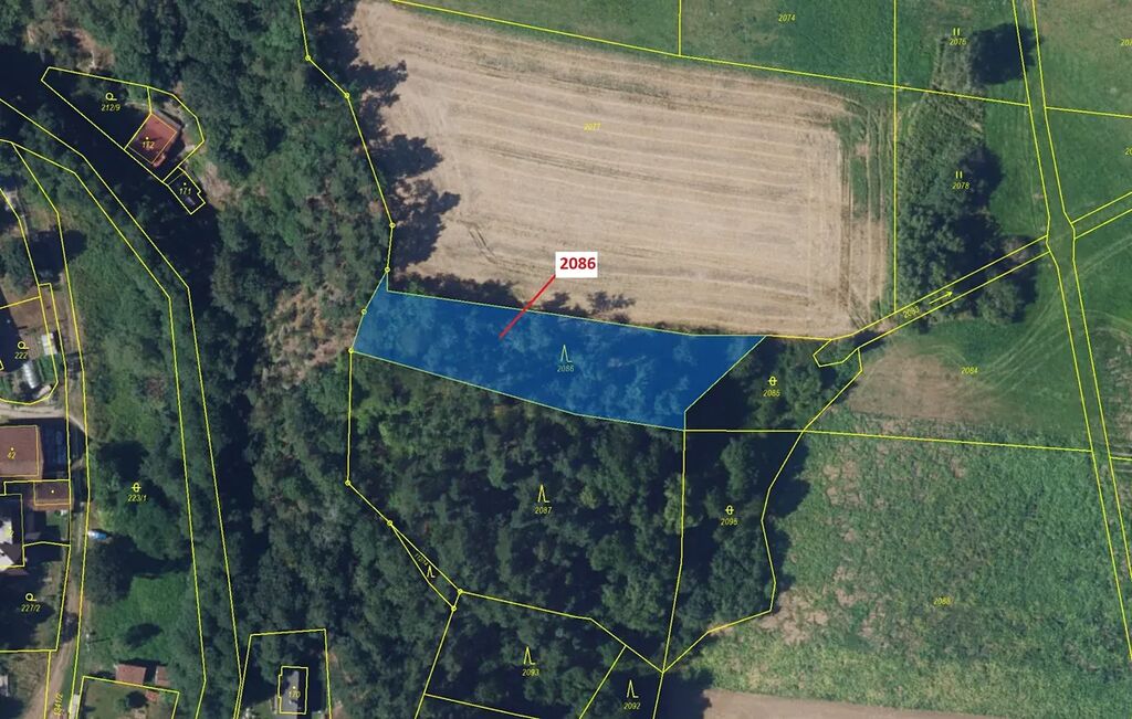 Lesní pozemek o výměře 1861 m2, parcelní číslo 2086, podíl 1/1, katastrální území Žďárec, obec Žďárec, obec s rozšířenou působností Tišnov, okres Brno-venkov, Jihomoravský kraj.