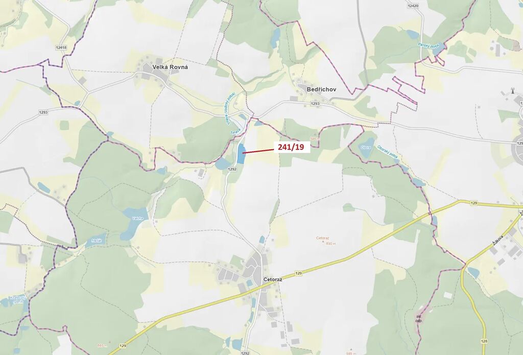 Lesní pozemek o výměře 17 171 m2, parcelní číslo 241/19, podíl 1/1, katastrální území Cetoraz, obec Cetoraz, obec s rozšířenou působností Pacov, okres Pelhřimov, Kraj Vysočina. Po těžbě.