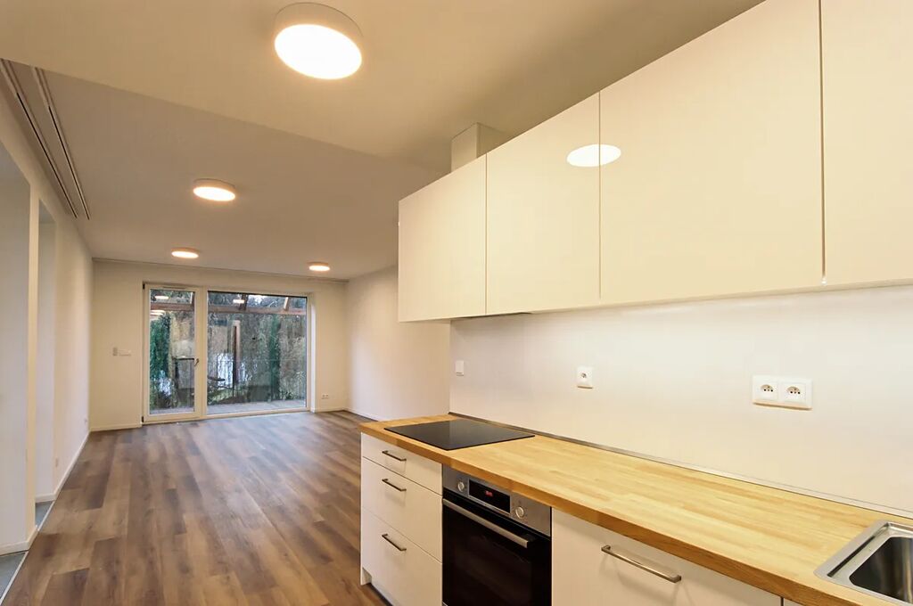 Nabízíme k pronájmu krásný byt 2 + kk v prvním nadzemním podlaží nového bytového domu v Dolních Břežanech. Dům o devíti bytových jednotkách, navržený ateliérem Jakuba Ciglera, se nachází v centrální části obce. Byt je vybaven kuchyňskou linkou s indukční varnou deskou, myčkou, troubou a digestoří, má vlastní plynový kotel, vstupní předsíně jsou vybaveny vestavěnými úložnými prostory. V pokojích jsou položeny vinylové podlahy, v koupelně a předsíni dlažba. Okna jsou vybavena stínícími roletami. K bytu náleží komora, přístupná z chodby a předzahrádka. Je možné pronajmout si venkovní parkovací stání.