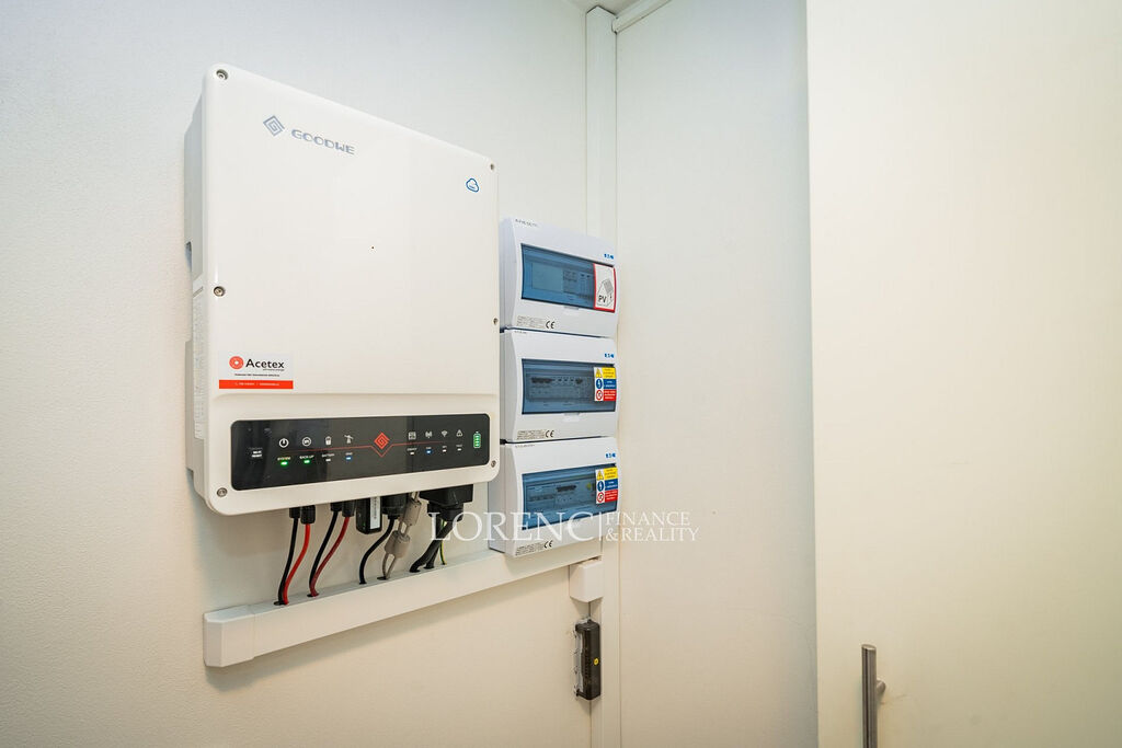 Dům je vybaven fotovoltaikou (2022) s bateriovým úložištěm 10 kW, kompletně zateplen a vytápění i ohřev vody zajišťuje plynový kondenzační kotel. V přízemí je instalováno vodní podlahové vytápění, v pokojích v patře klasické radiátory. Tepelný komfort navíc zajišťují krbová kamna, která vytvoří útulnou atmosféru, a v letních měsících klimatizace.
