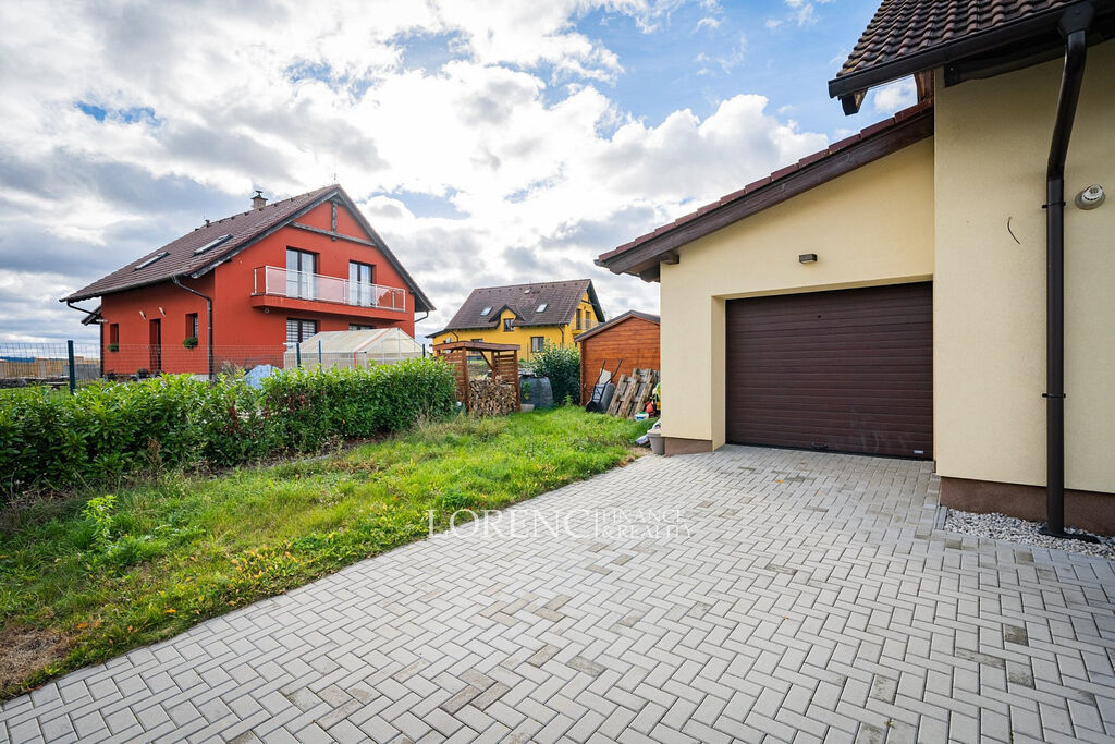 Parkování je velmi pohodlné – tři místa, z toho jedno v garáži a dvě na pozemku. Návštěvy mohou bez problému zaparkovat na ulici, kde je dostatek míst.