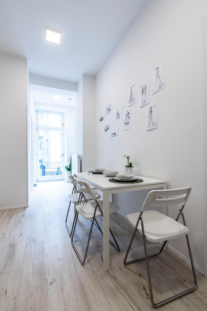 Plně vybavený byt o celkové výměře 71,86 m² a terasou 16 m². Byt má 3 neprůchozí pokoje, samostatnou šatnu a kuchyň s vestavěnými spotřebiči, koupelna se sprchovým koutem.