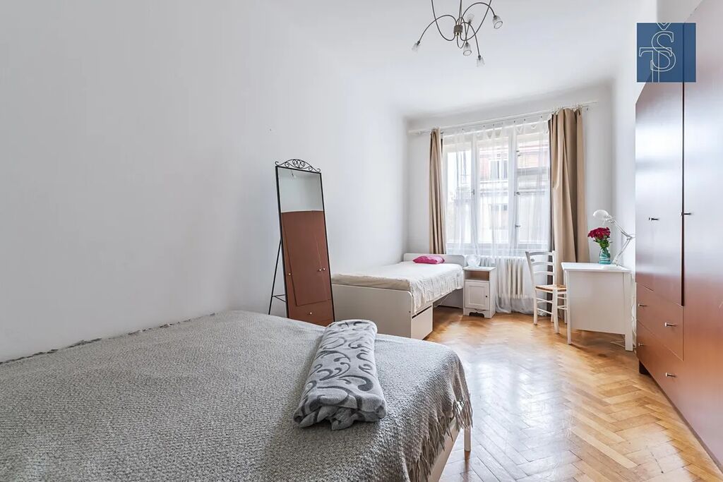 Byt se nachází v 5. patře cihlového činžovního domu s výtahem, který si dodnes uchoval původní pražské kouzlo a noblesu.