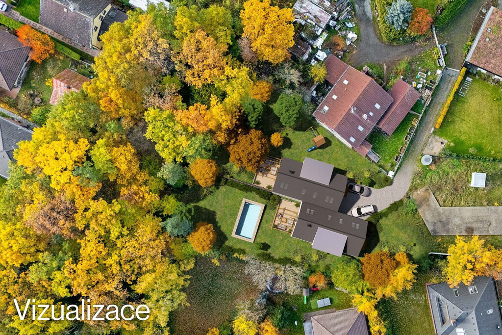 V souladu s územním plánem lze zastavět až 30 % celkové plochy, tedy přibližně 333 m², což odpovídá výstavbě dvou rodinných domů o zastavěné ploše kolem 105 m² každý. Nové rodinné domy mohou mít maximálně dvě nadzemní podlaží a podkroví nebo rovnou střechu, čímž zůstane zachován jednotný charakter okolní zástavby. Pozemek s částí vzrostlých stromů nabízí naprosté soukromí i přirozený kontakt s přírodou. K dispozici je architektonické zpracování návrhu, které řeší umístění dvou samostatných rodinných domů se zahradami, zpevněnými plochami a příjezdovou cestou. Pro lepší představu je k nabídce připravena i vizualizace, která bude součástí videoprezentace.