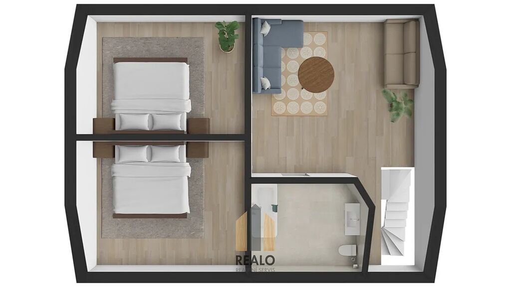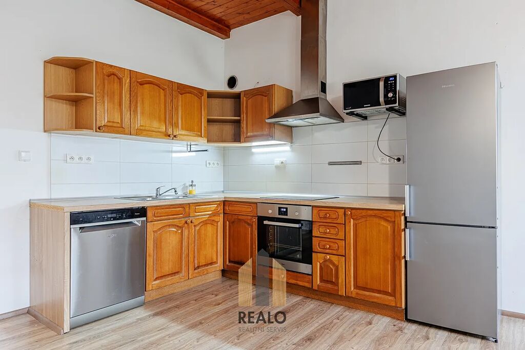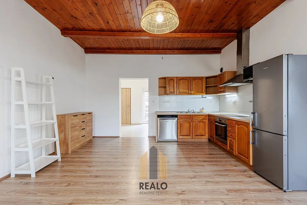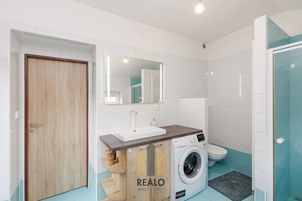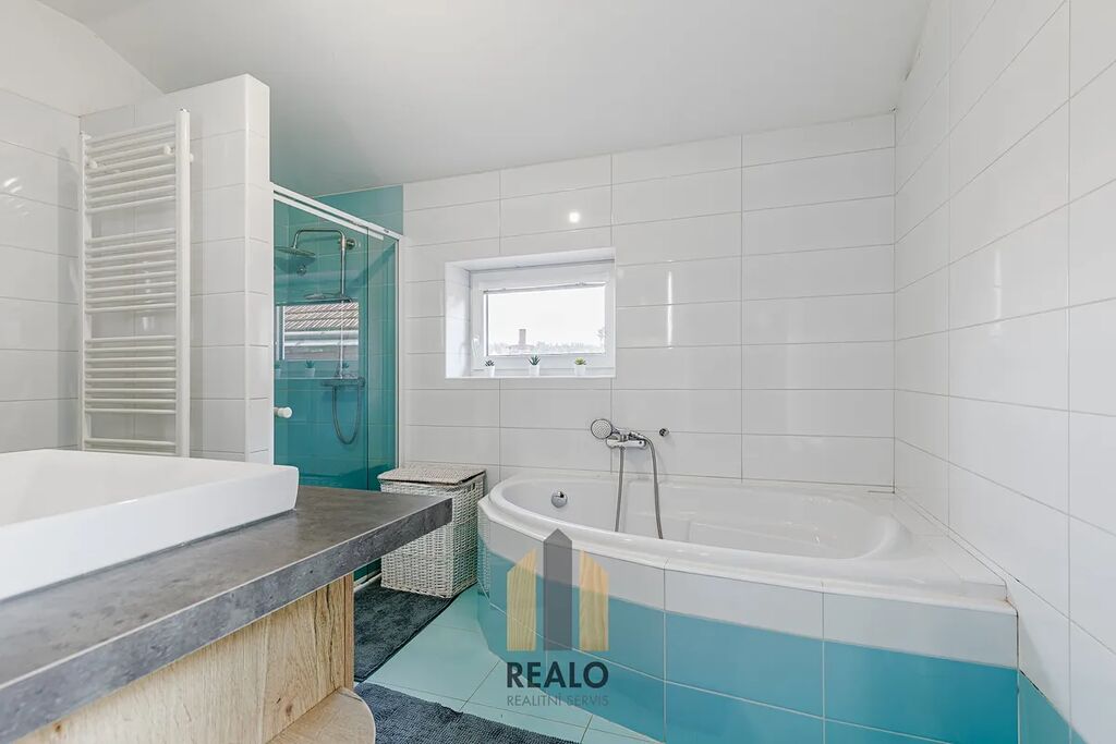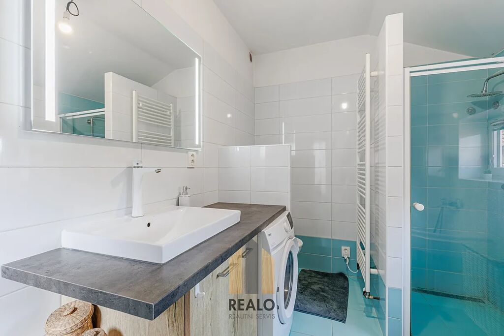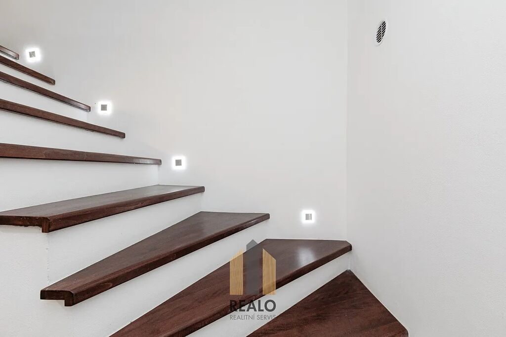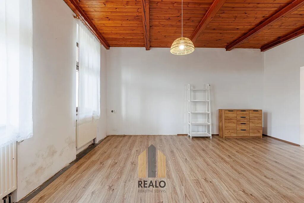 V přízemí se nachází vstupní chodba, kuchyně, obývací pokoj, koupelna a technické zázemí, ložnice. V podkroví jsou umístěny tři samostatné pokoje a druhá koupelna. K dispozici je i dvůr.