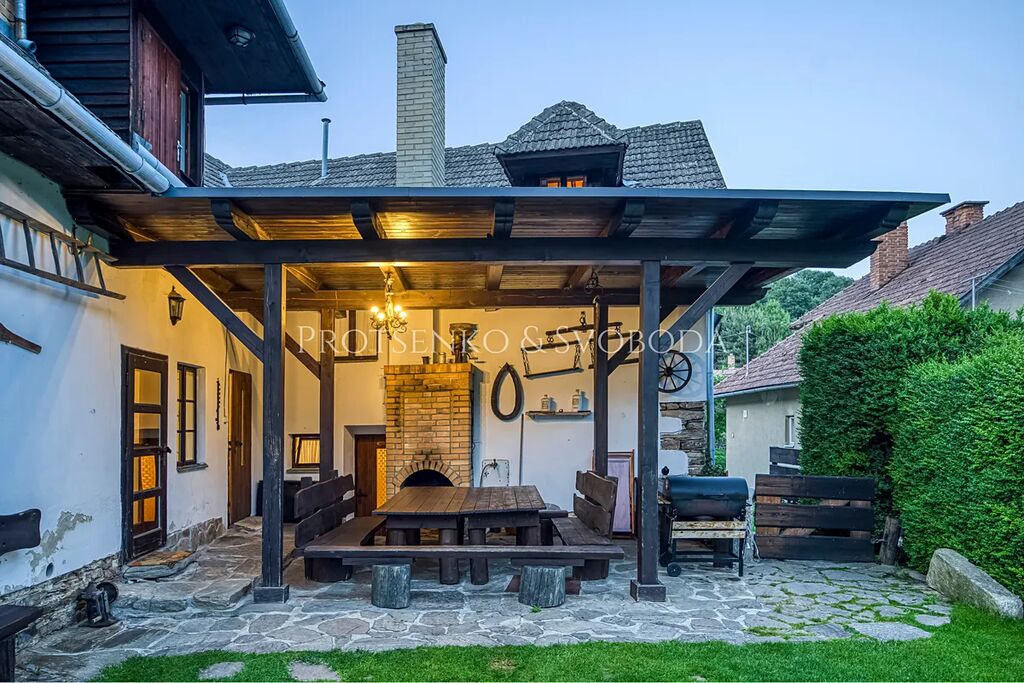 Centrálním srdcem objektu je prostorná společenská roubenka s kachlovými kamny a výčepem, která slouží jako ideální místo pro večerní posezení, oslavy nebo firemní akce. Atmosféru zde doplňuje krásná zahrada s grilem, krbem a krytým venkovním posezením, která přímo vybízí k letnímu odpočinku a nezapomenutelným chvílím s přáteli či rodinou. Děti ocení trampolínu, pískoviště či bazén, dospělí pak klid, který přináší okolní příroda.