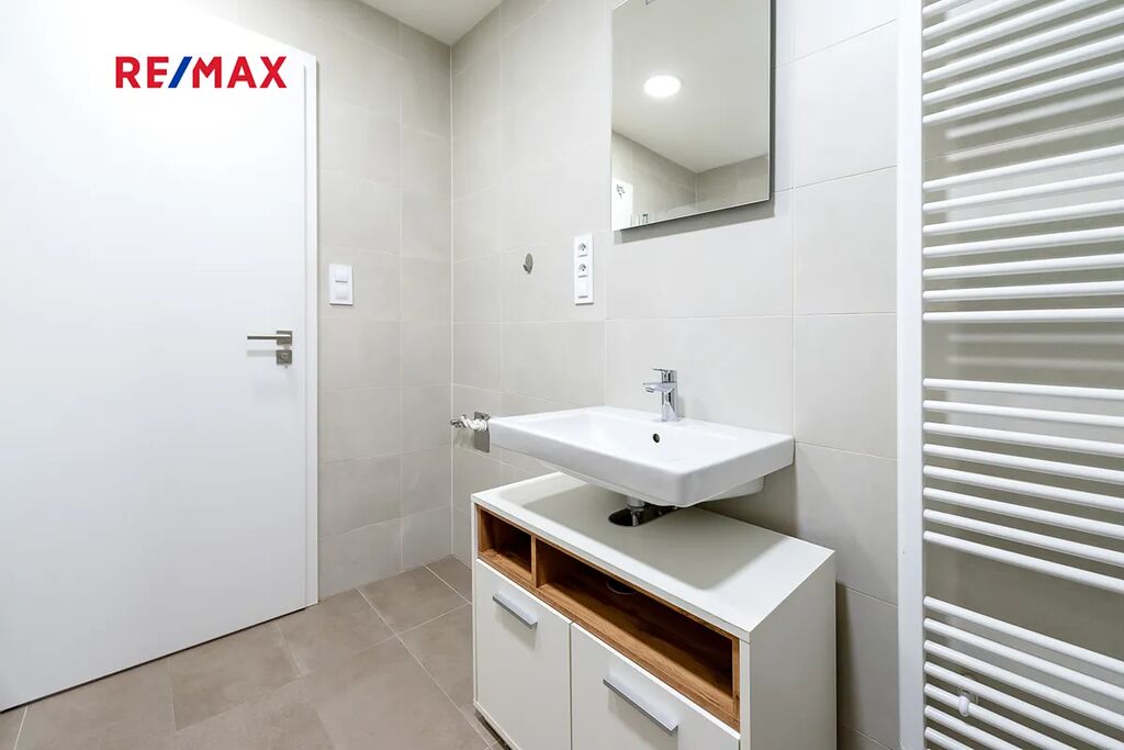 Interiér* bytu je ve výborném stavu, působí jako nový. Dominantou obývacího prostoru jsou velká francouzská okna orientovaná na jih, která zajišťují dostatek světla po celý den. Podlahy tvoří kvalitní laminát, v bytě je instalována nová kuchyňská linka s moderními spotřebiči. V koupelně se nachází prostorná vana, v ložnici velká vestavěná skříň poskytující dostatek úložného prostoru. Součástí prodeje je garážové stání v suterénu domu.