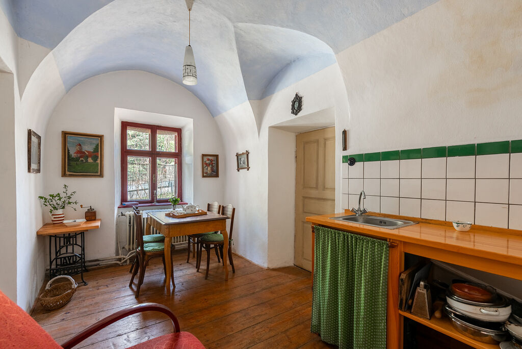 Obytná část: cca 150 m² (v patře stylový historický interiér plus koupelna, v přízemí funkční zázemí s kamny a připojením vody)