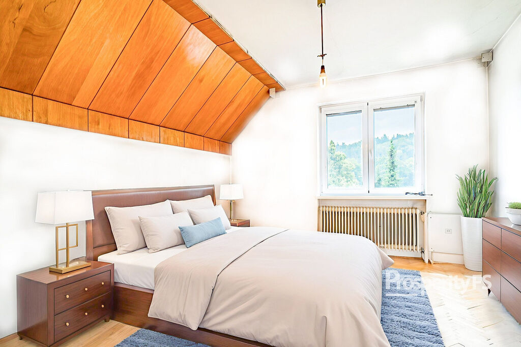 V patře se nachází tři samostatné ložnice, půdní prostor a místnost připravená pro budoucí koupelnu a toaletu. Toto podlaží si tak můžete dokončit přesně podle svých představ a potřeb.