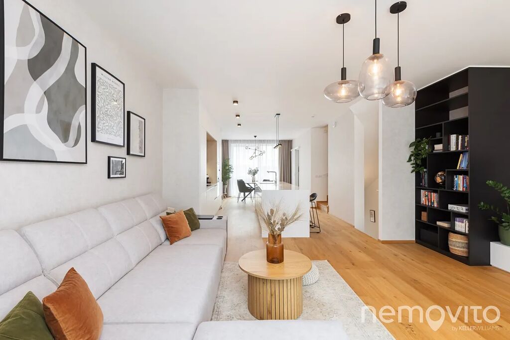 Třípodlažní řadový dům 4+kk z roku 2023, který je prodáván včetně kompletního zařízení ve špičkovém standardu. Proti základnímu vybavení byl dům v mnoha směrem upraven - počínaje kvalitní dřevěnou podlahou, konče kompletně překopanou elektroinstalací s chytrou domácností, přes kterou lze celý dům ovládat na dálku. K dispozici je okamžitě.