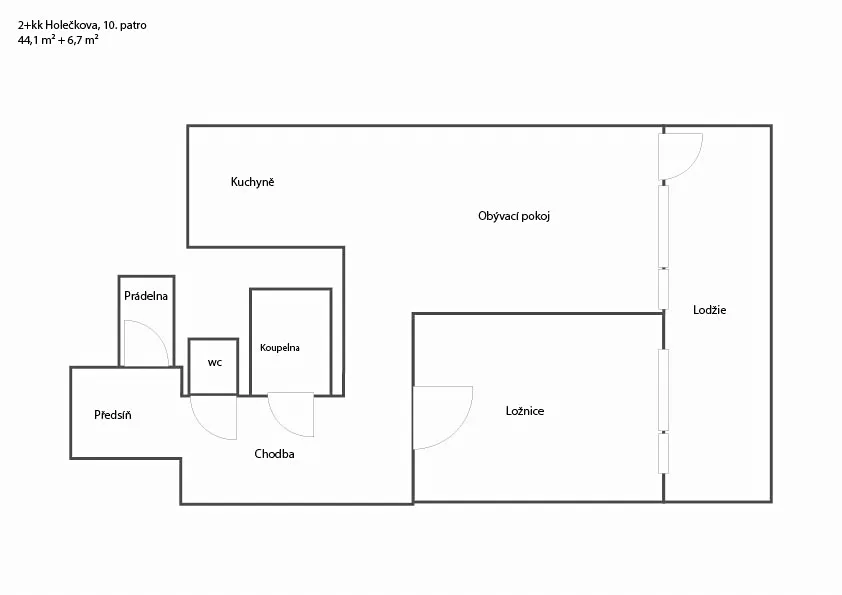 Celková užitná plocha bytu činí 50,8 m² (44,1 m² byt + 6,7 m² lodžie).