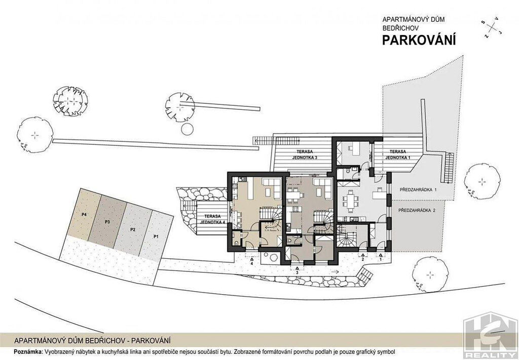 V tomto apartmánovém domě nabízíme jednotku k prodeji v dispozici 2+kk s celkovou plochou 70,83m² z toho plocha bytu 50,6 m² (plocha bytu dle nařízení vlády č.366/2013 Sb. ) s terasou (20,23 m²) a předzahrádkou 100,84m². Jedná se o nebytovou jednotku ATELIÉR.