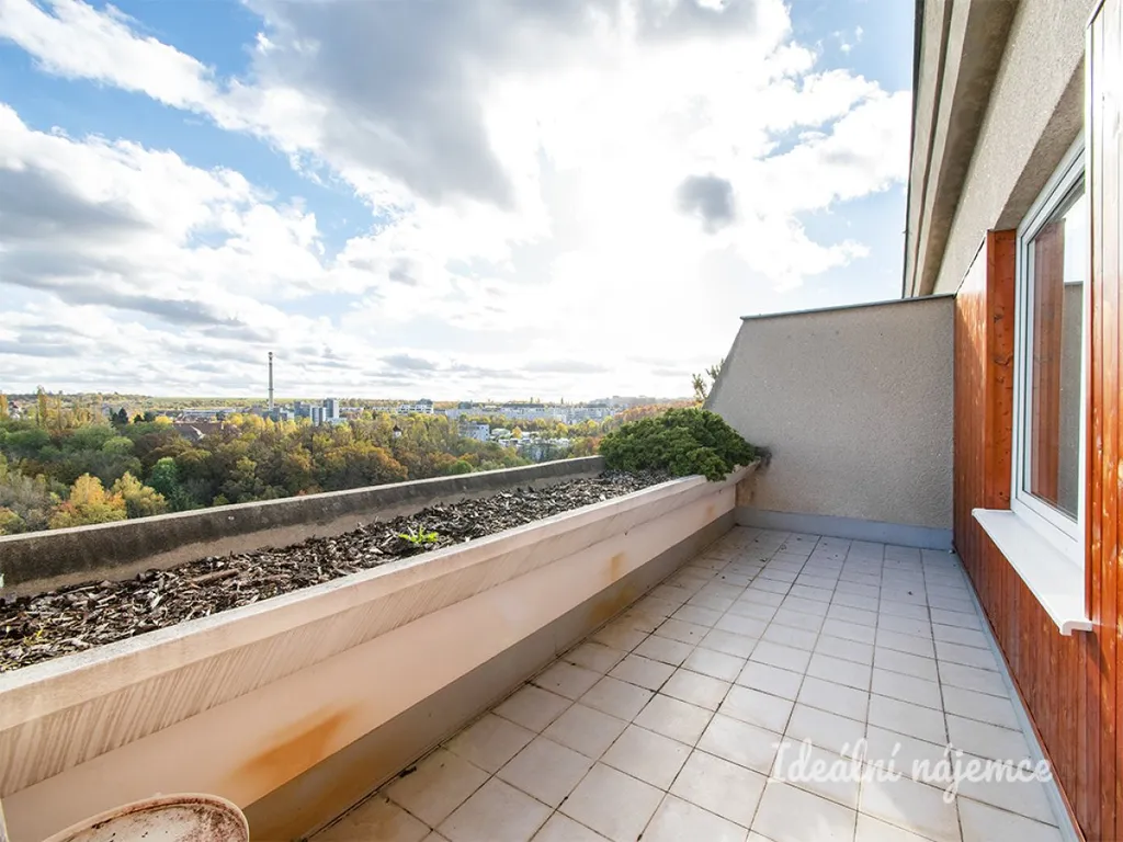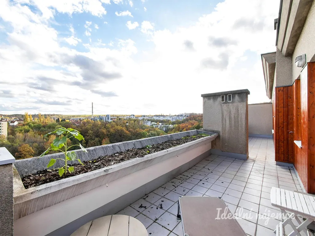 Výhodou bytu je prostorná terasa, která nabízí krásný výhled na Malvazinky a Jinonice.